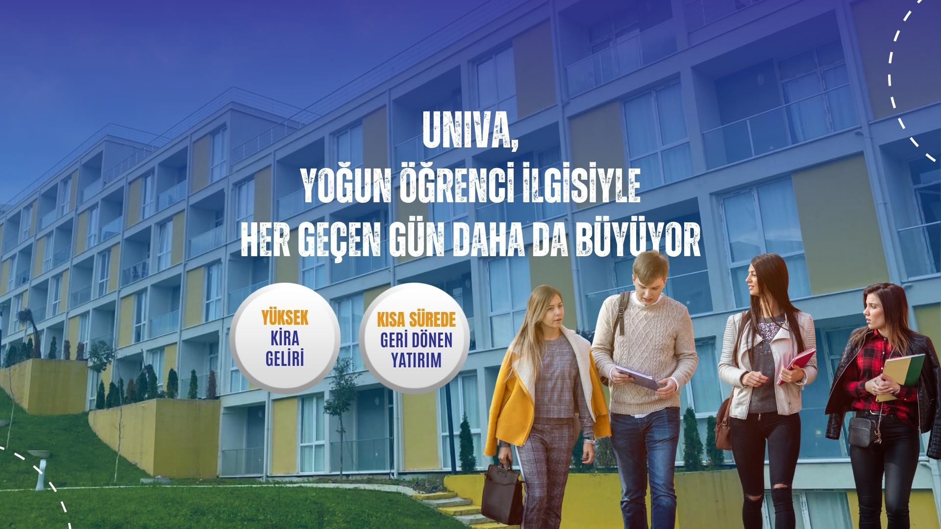 UNIVA Yatırım Amaçlı Öğrenci Evi; Türkiye’de öğrenci nüfusunun en çok ihtiyaç duyduğu bölgelerde, üniversitelerin yanı başında değeri her gün artan ve düzenli gelir getiren alternatif bir yatırım imkanı sunuyor.